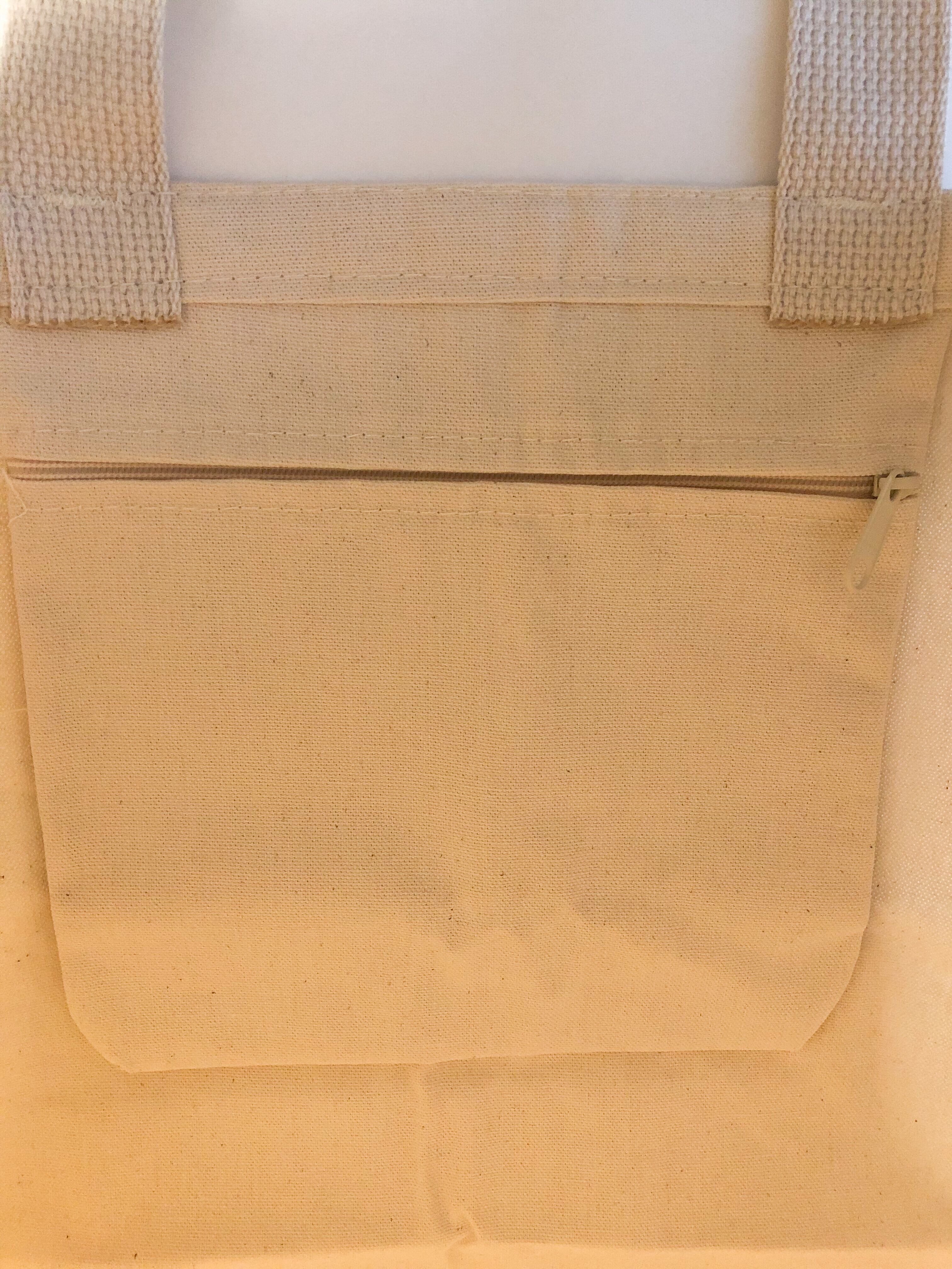 表面には生成りのキャンバス生地に映える黒色で、筆記体デザインの店名ロゴが大きく入っています。しっかりとした帆布生地で作られているため、重い荷物でも安心して持ち運べます。インナーポケット付きで、小物が散らばる心配もありません。携帯電話やキーケース、コスメポーチなどをすっきり整理できます。