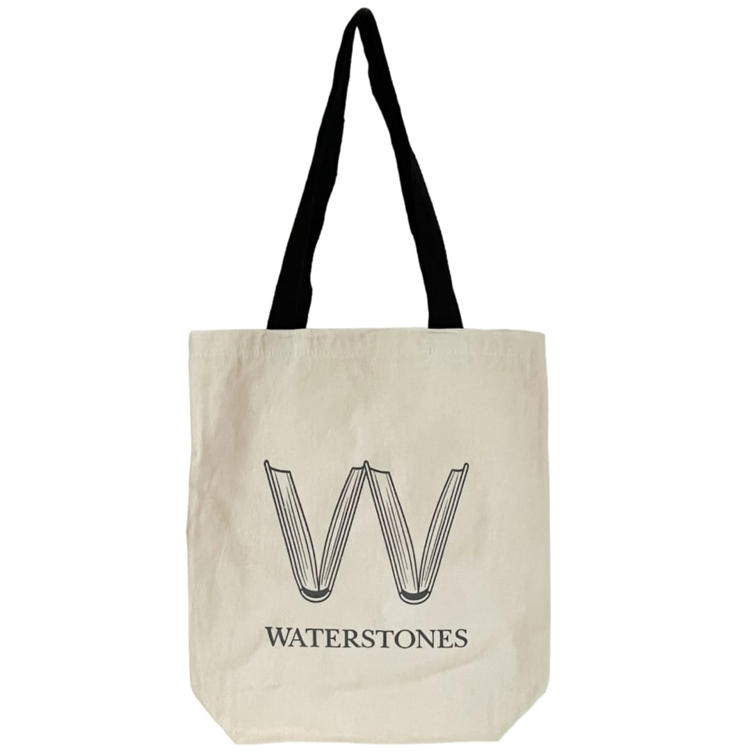 【イギリスを代表する有名書店WATERSTONESのトートバッグ。Wの字を描いた本のデザインがポイントです】