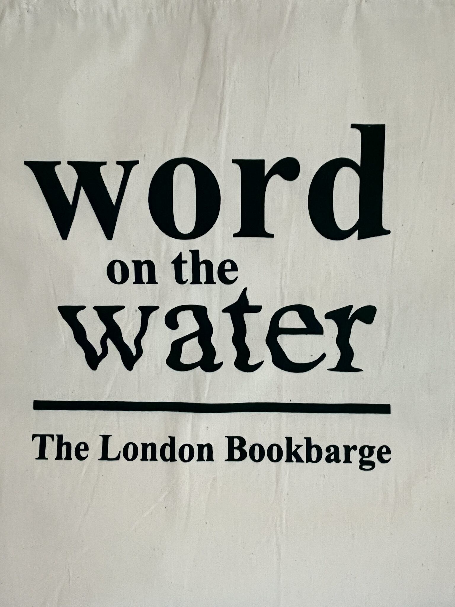 【ロンドンの運河に浮かぶボートの本屋さんのトートバッグ。ユニークなボートのイラストが特徴的です。】
